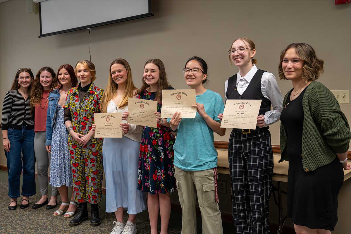 The English Department inducts new student members to Sigma Tau Delta every year. To be eligible for Sigma Tau Delta membership, students majoring or minoring in English must have: