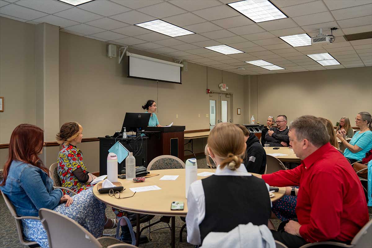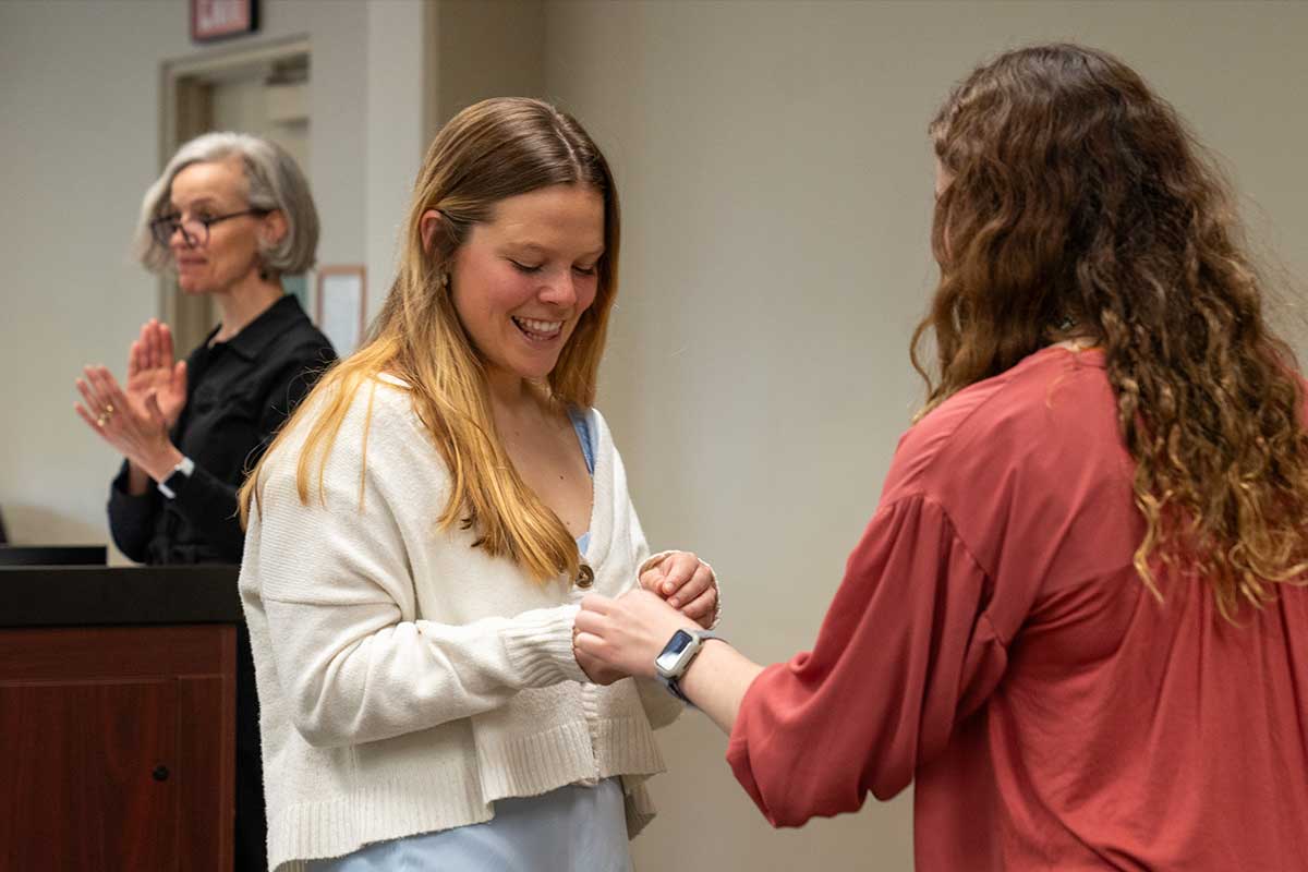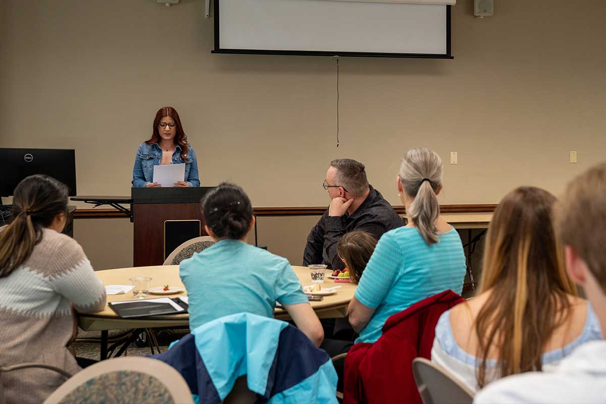 For the induction ceremony for new Alpha Chi Iota chapter members of Sigma Tau Delta, students:
