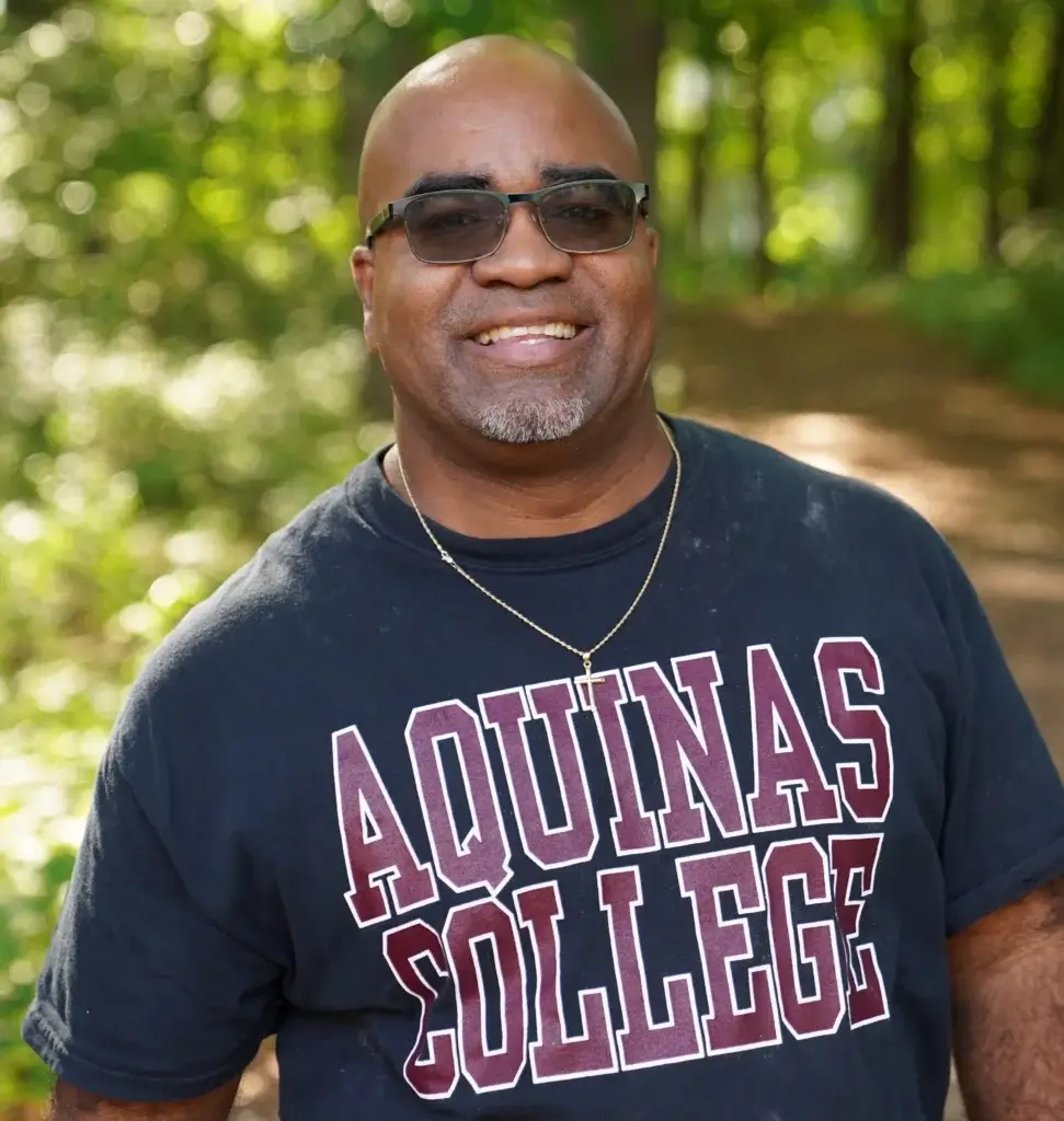 I discovered Aquinas at a college fair. I had already decided to go to a university in Ohio, but the representative from Aquinas was really enthusiastic. The more I learned about the college, the more I felt that it aligned with my values. So I decided to attend Aquinas instead.